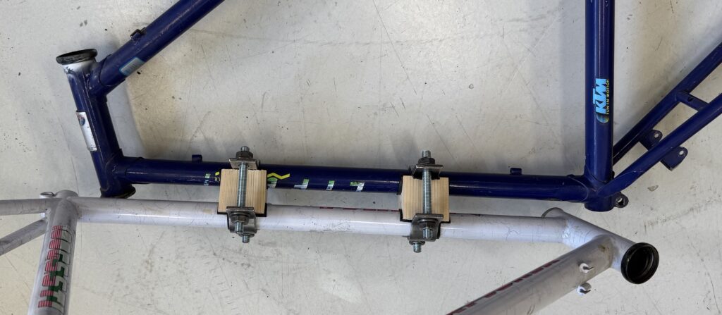 When instead using standard connectors that are normally used as pipe fixation collars (generously sponsored by Walraven) in combination with custom, but standardized spacers, it is possible to connect frames sideways, with adjacent tubes in parallel.