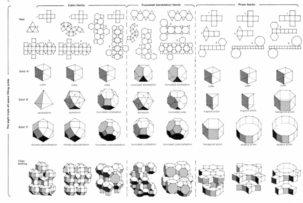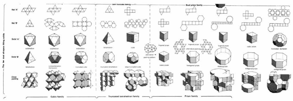This exploration quickly led us to space-filling systems—three-dimensional tilings that completely fill space using repeating solids, with no gaps or overlaps. All solids connect via full faces, and all connections are repeatable.