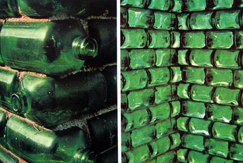 - Textured sides: Small bumps along the sides made the bottles easier to handle and helped the mortar stick better during construction.